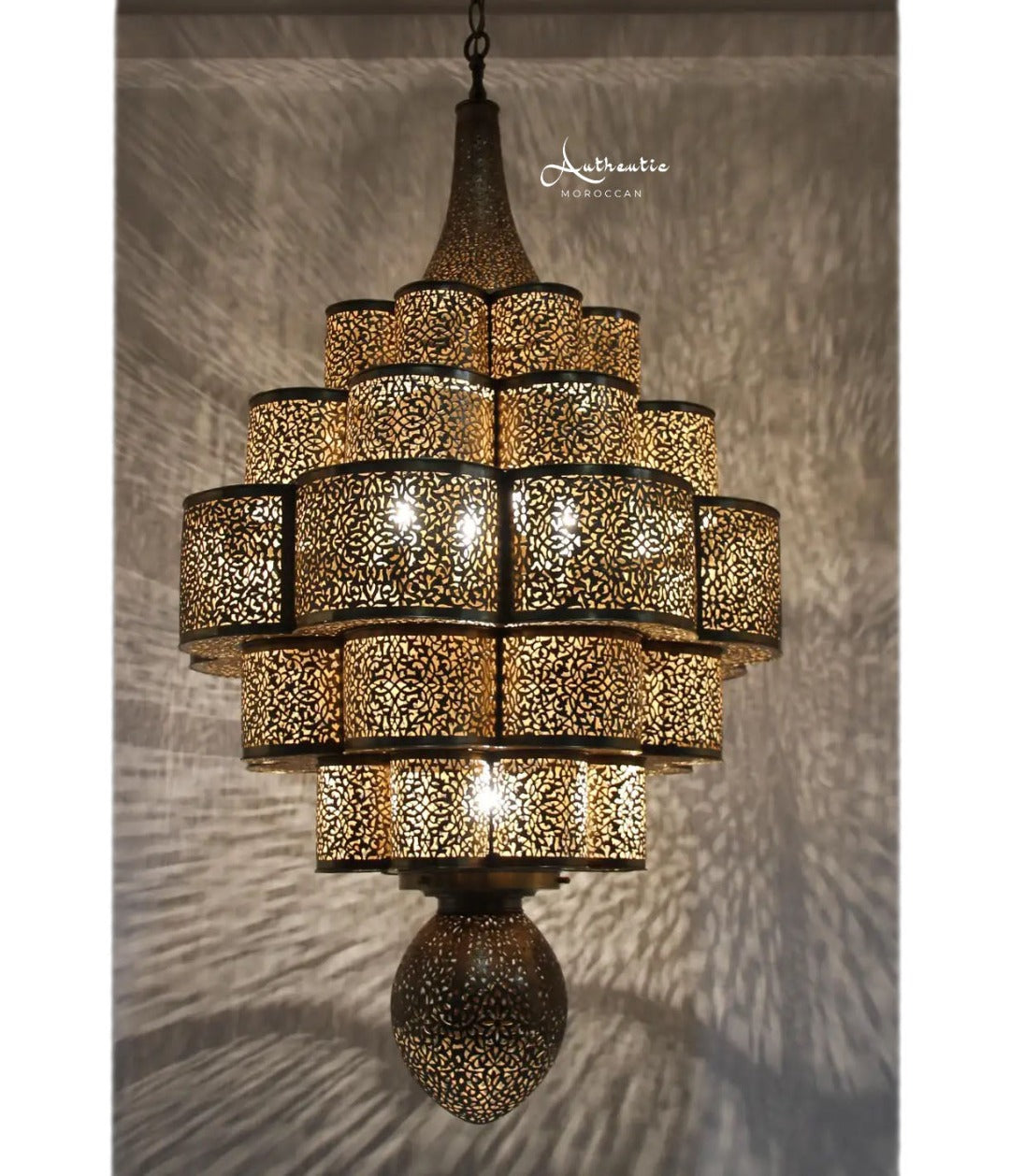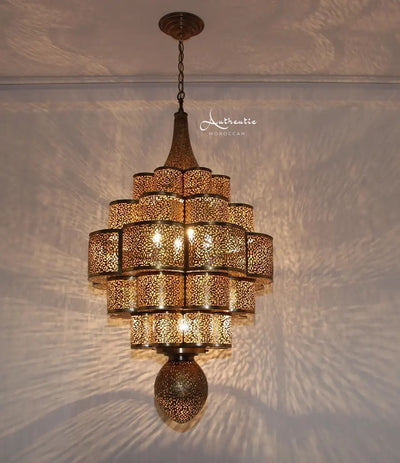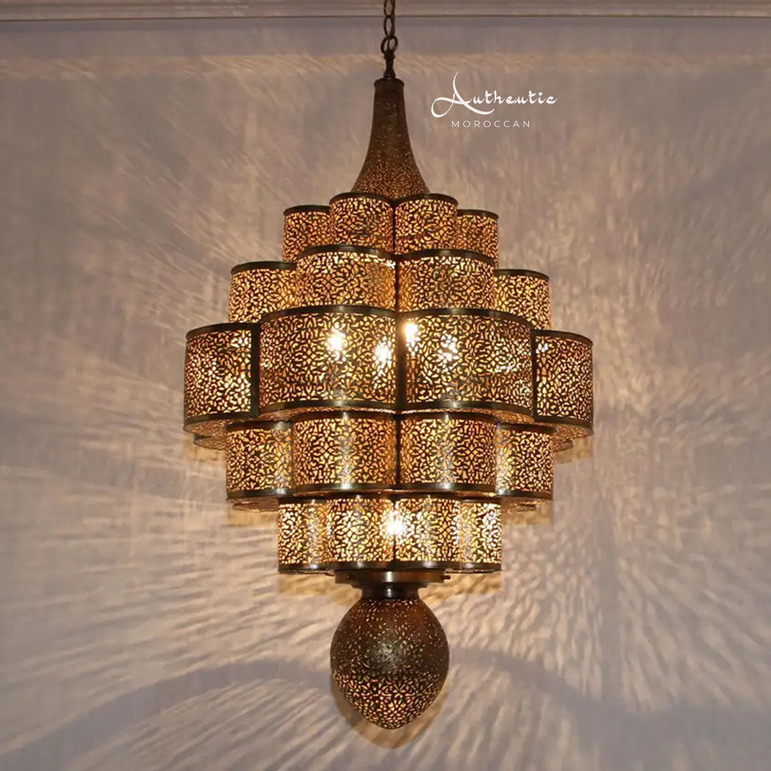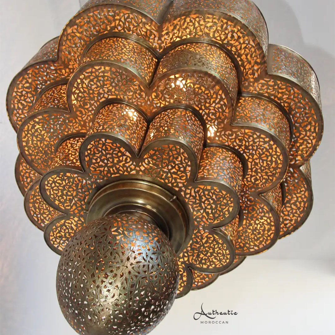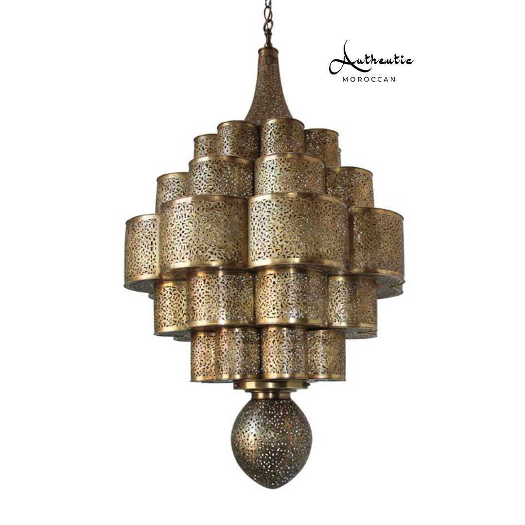 Moroccan Brass Chandelier Handmade Ceiling Light design Arabic filigree - Authentic Moroccan