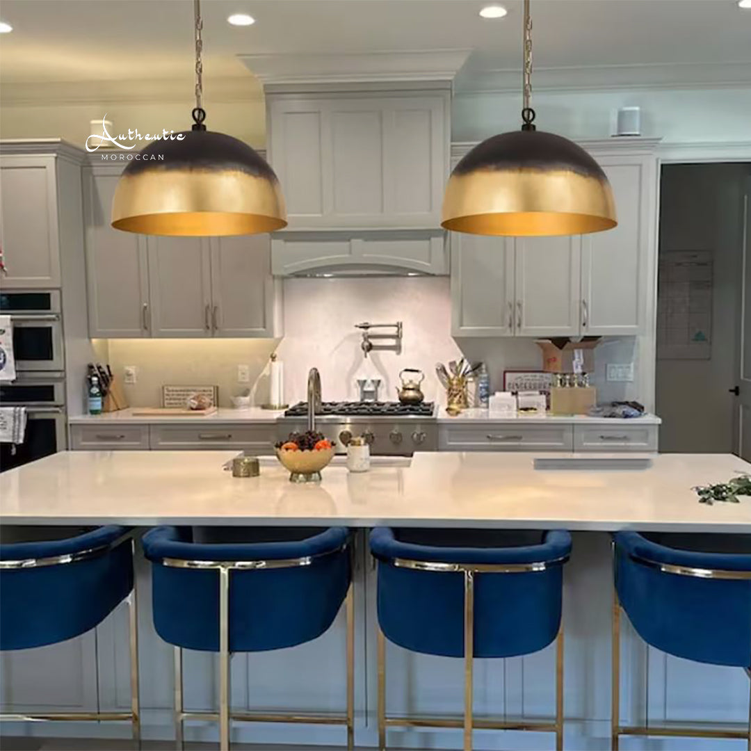 Gold and black Dome Ceiling Light Brass Handmade Design Kitchen Island Lampshade dining table lighting - Authentic Moroccan