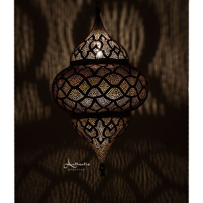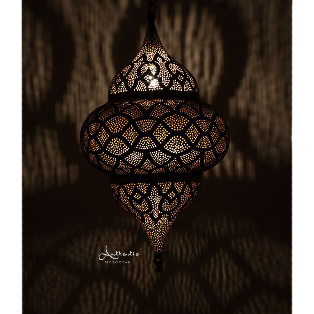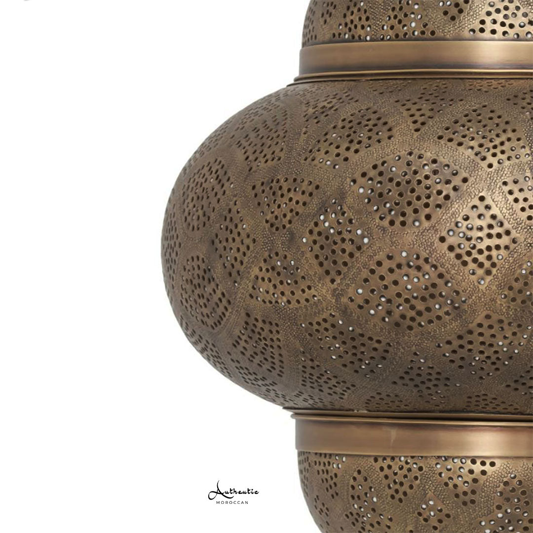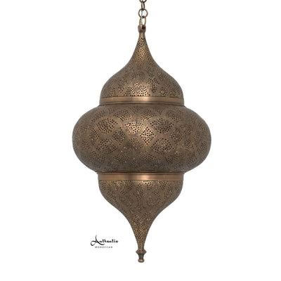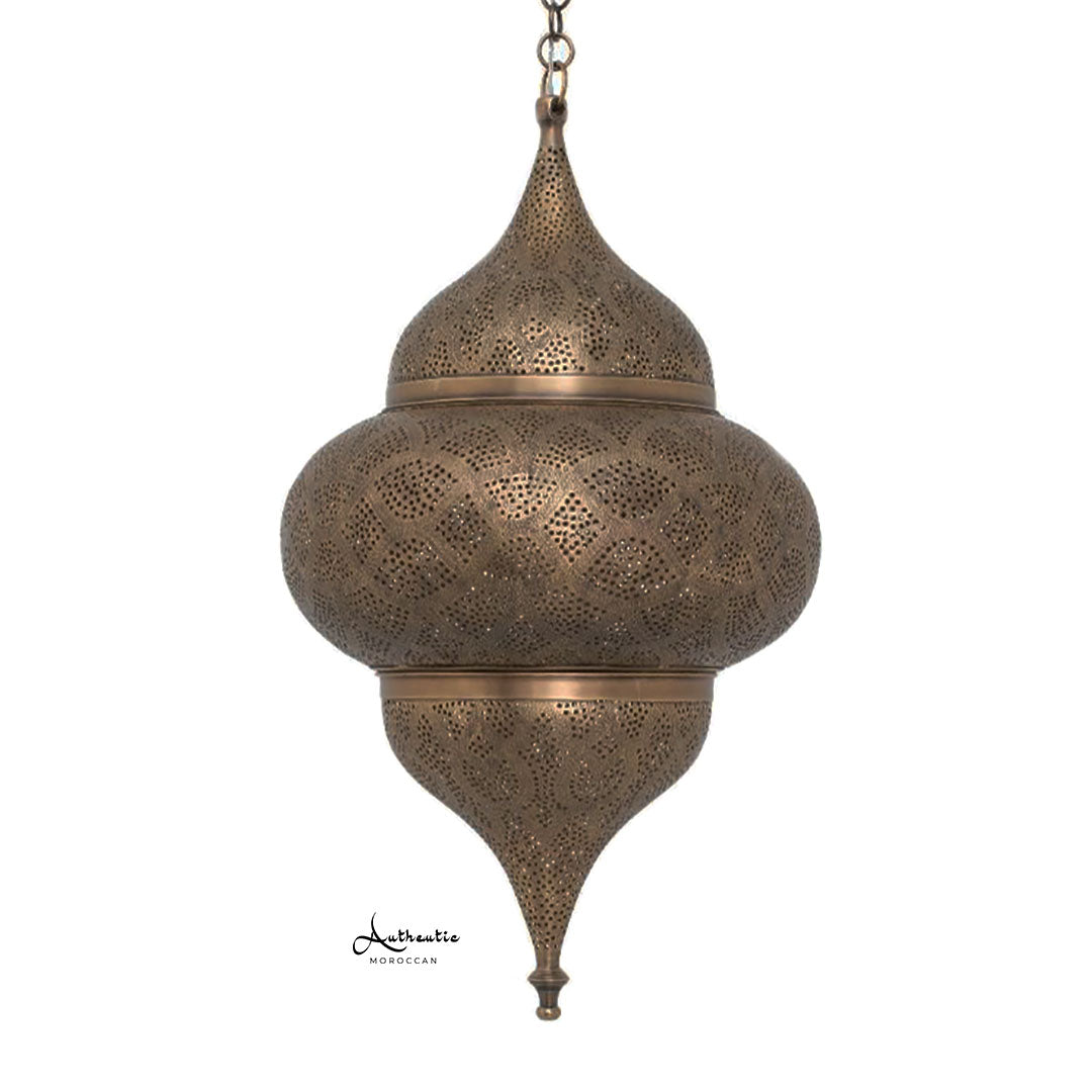 Our Ceiling Pendant is an exquisite example of Moroccan handcrafted lighting; shaped from sheets of solid brass with hand chiselled floral patterns through out the body.