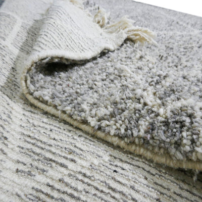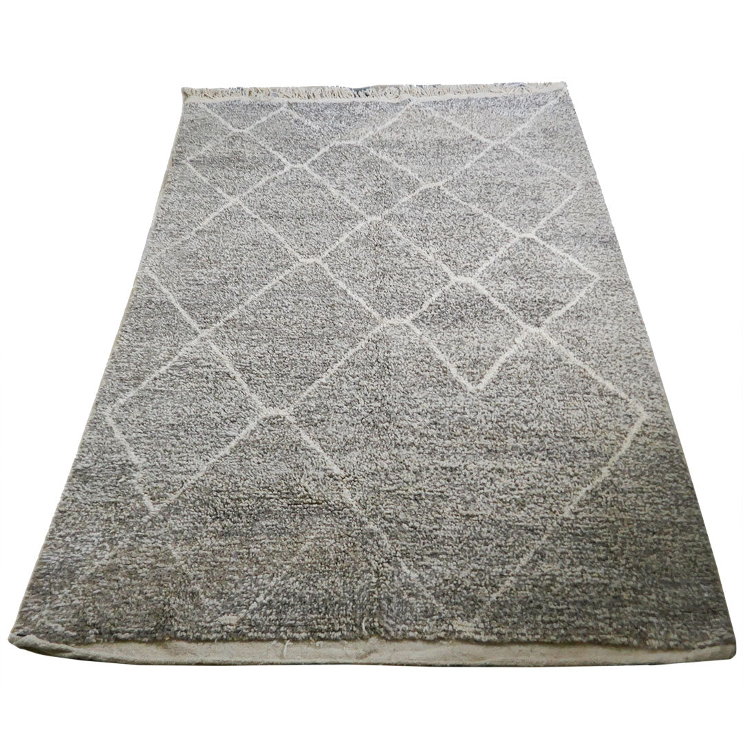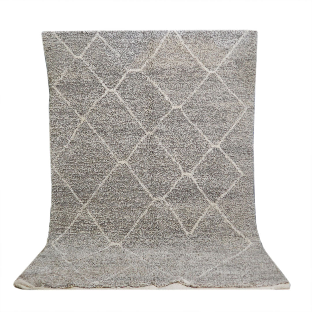 genuine beni ouarain handmade abstract wool moroccan rug berber neutral minimalist grey diamond design carpet