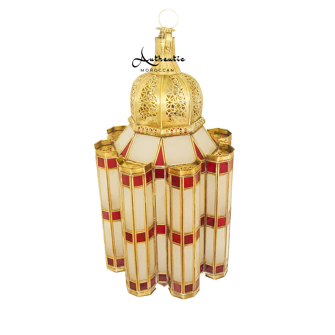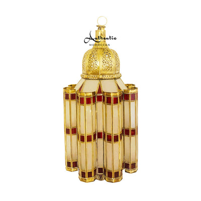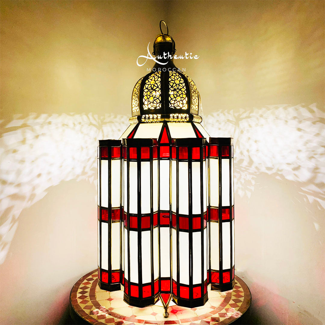 Moroccan table lamp with glass panels in red and white, Mamounia - Authentic Moroccan