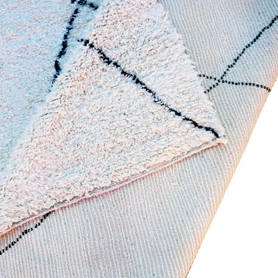 Unsere Beni Ourain-Teppiche werden aus der feinst geschorenen Schafswolle gefertigt, die der täglichen Sonne ausgesetzt ist, was ein wesentlicher Bestandteil der Beni Ourain-Praxis ist. Aus diesem Grund bieten sie Premium-Qualität mit 100 % erstklassiger Wolle, rein natürlichen Wollfarben und ohne Farbstoffe für langanhaltenden Komfort, Wärme und Luxus.