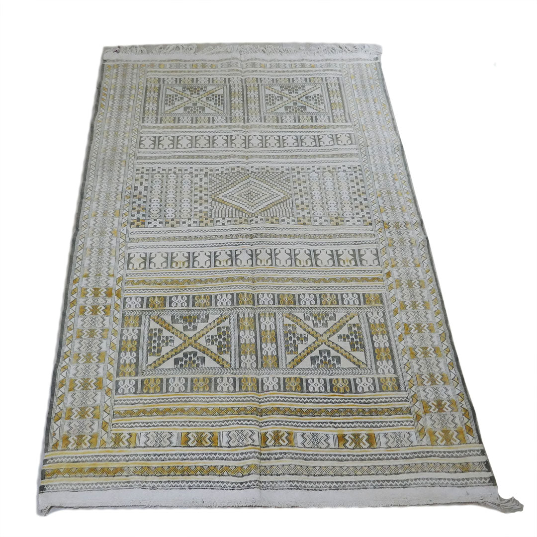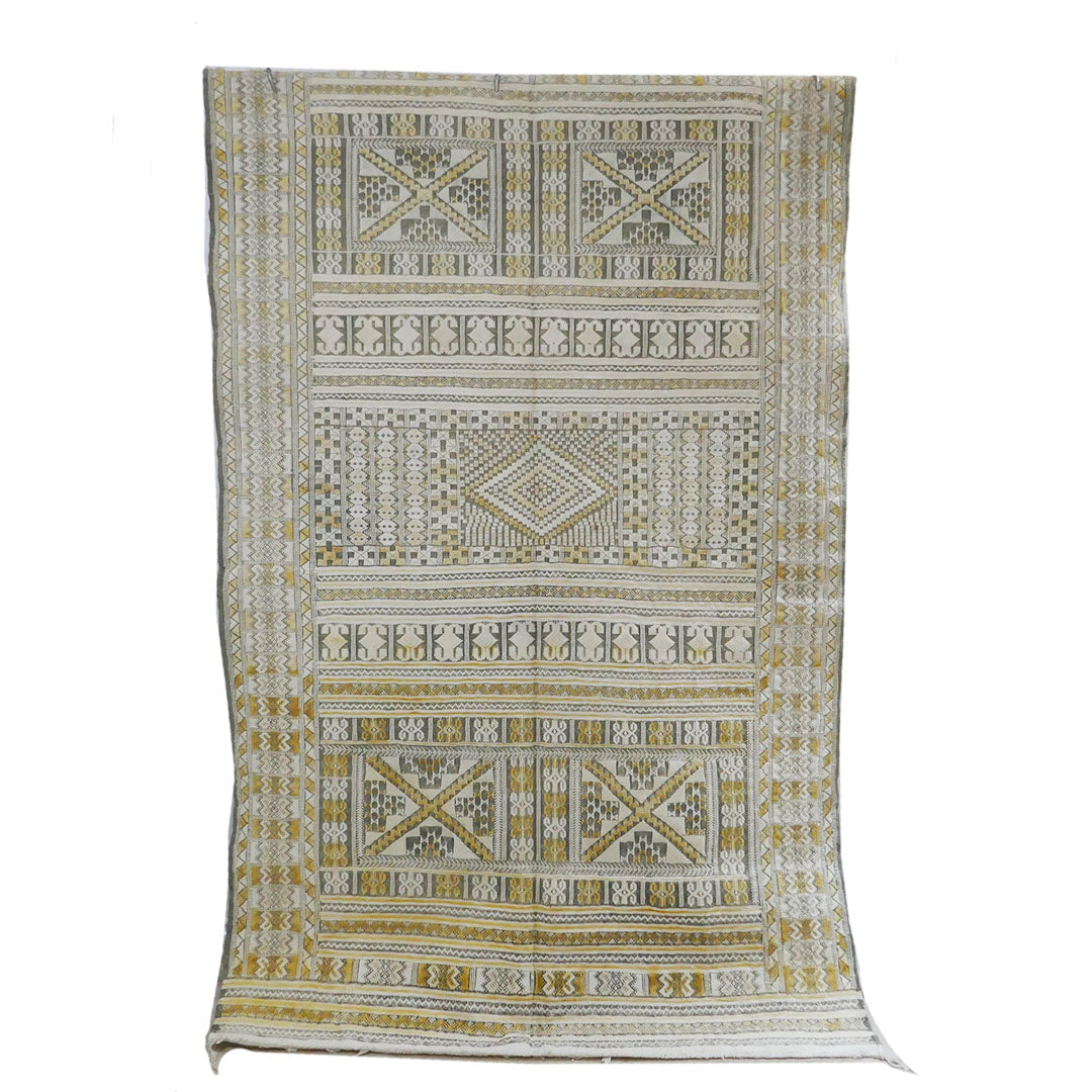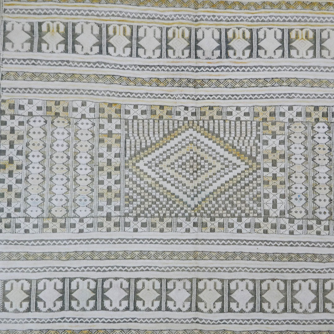 Aufgrund seiner organischen Fasern und seiner reinen Farbe ist unser Kelim-Teppich eine gute Wahl für jeden Raum in Ihrem Zuhause. Das leichte und wendbare Vintage-Design des Bodenteppichs macht ihn langlebig und einfach zu transportieren. Dieser Teppich, der Strapazierfähigkeit und Eleganz vereint, hält ein Leben lang und kommt nie aus der Mode.