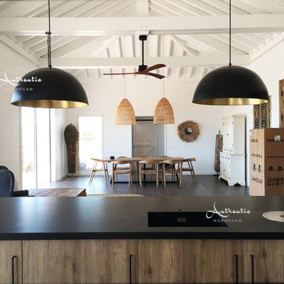 Set of 3 Brass Dome Ceiling Light, Black & Gold