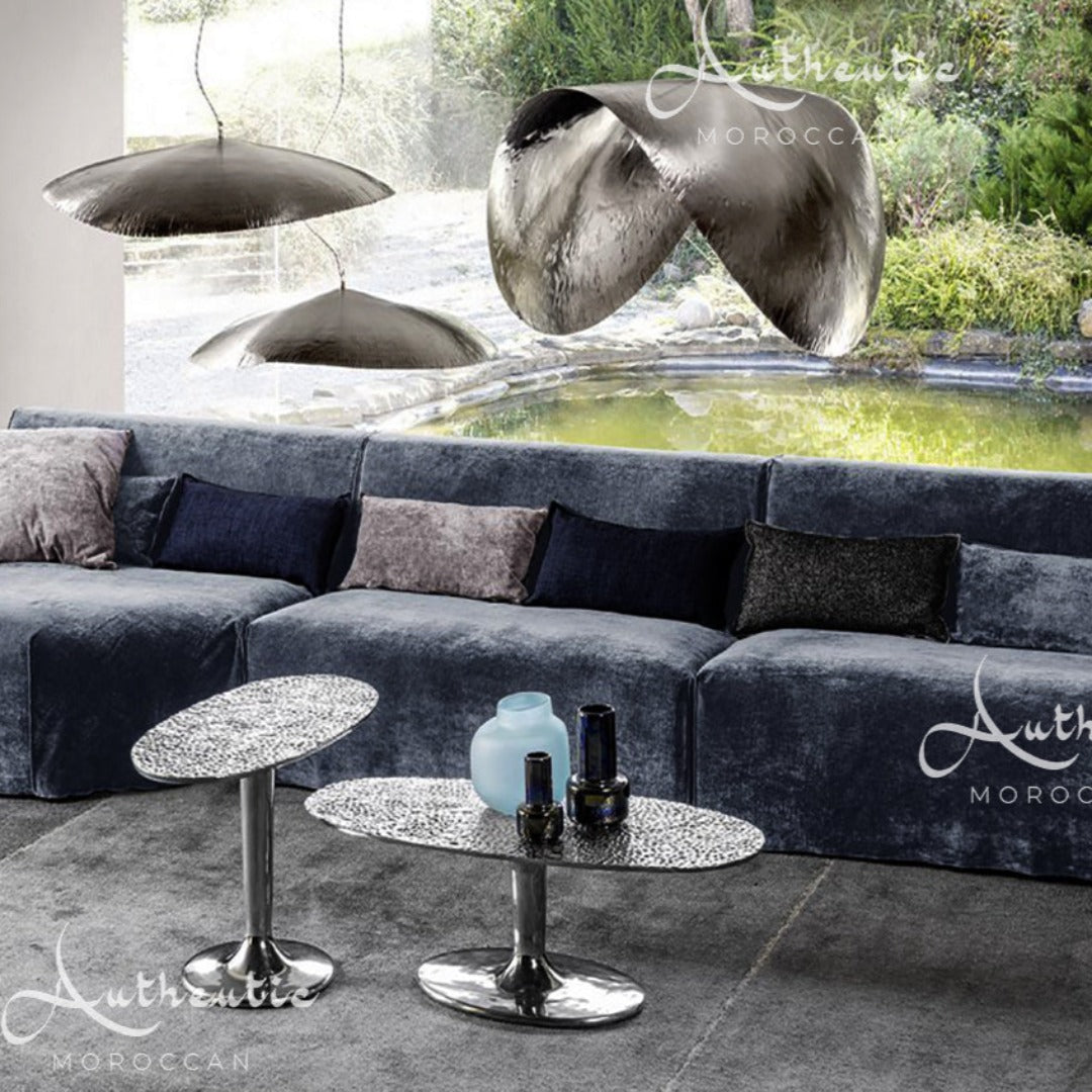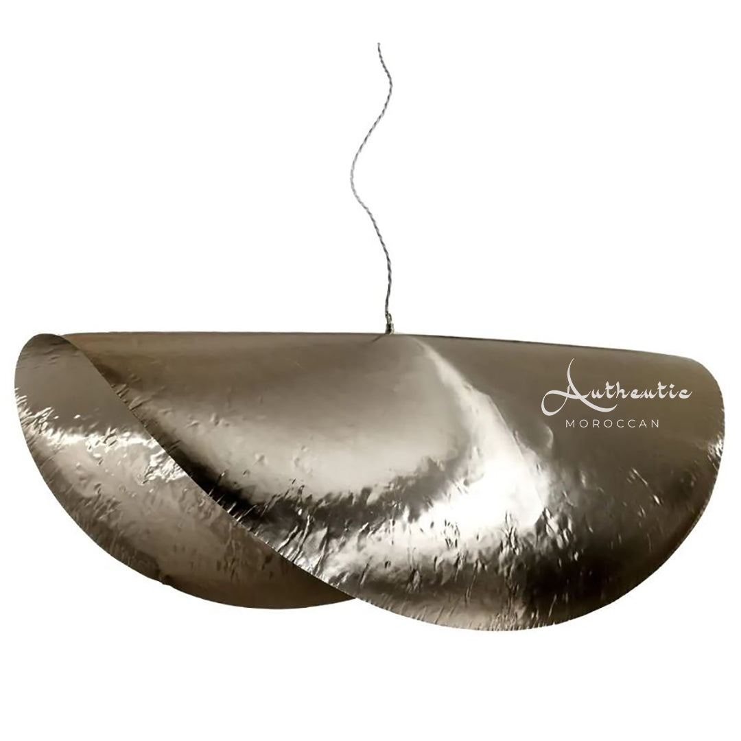 Twisted Silver Brass Leaf ceiling lamp, Lotus Leaf lighting Fixture design in living room- Authentic Moroccan