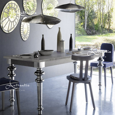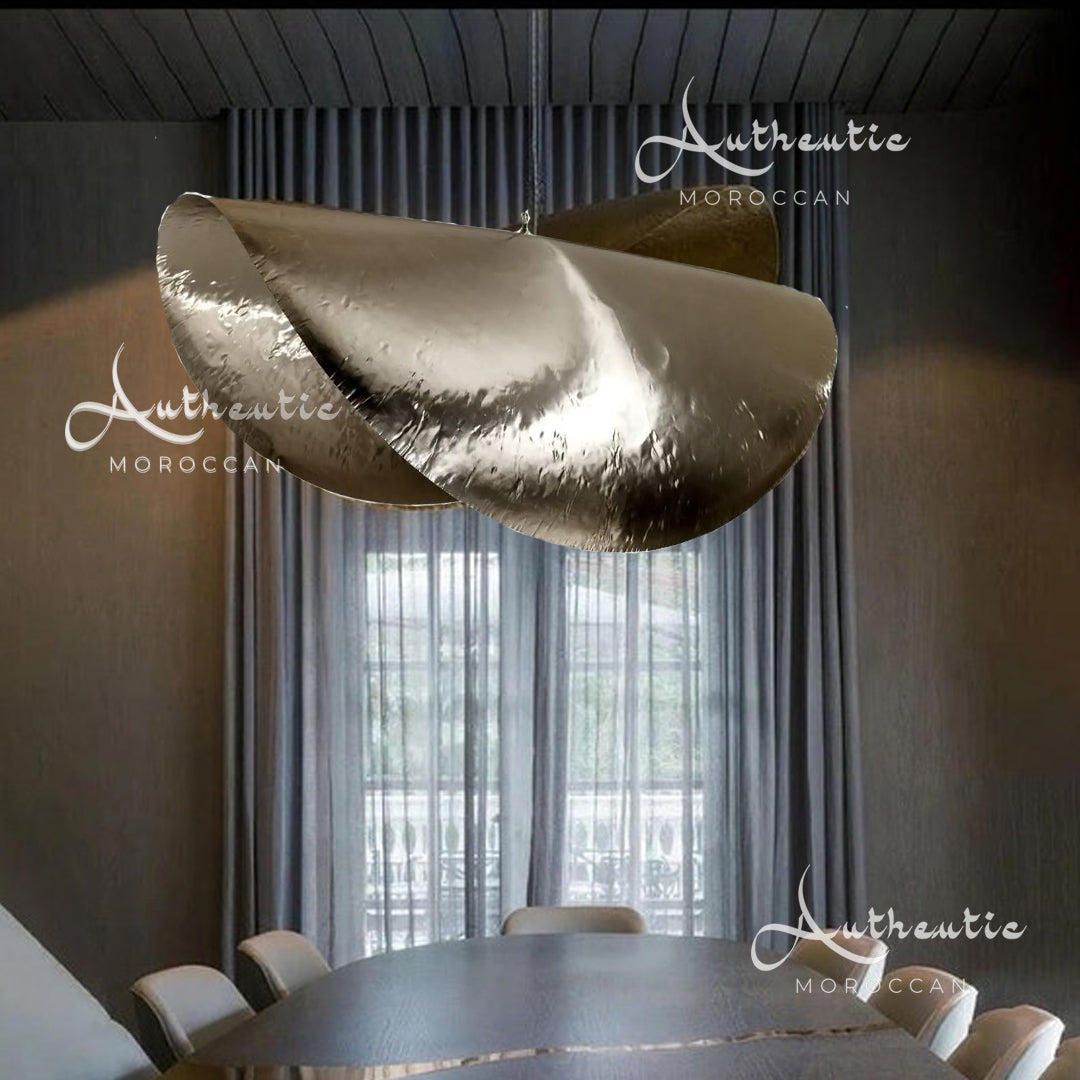 Twisted Silver Brass Leaf ceiling lamp, Lotus Leaf lighting Fixture design in dining room- Authentic Moroccan