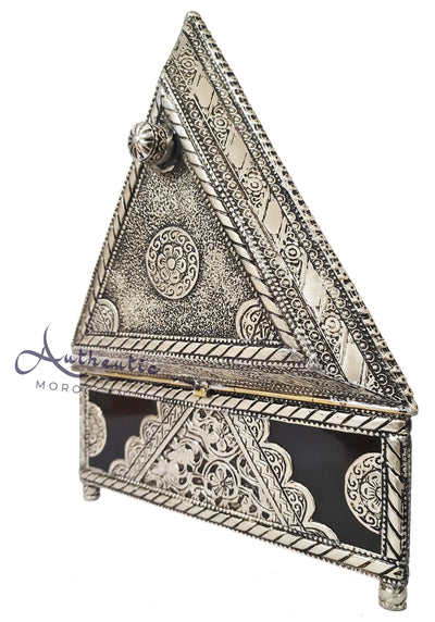 A Stunning Handcrafted Engraved Metal & Quartz Glass with a dark brown Velvet Interior. Suitable for your Jewelry, Accessories,...The box is finished at the highest quality.