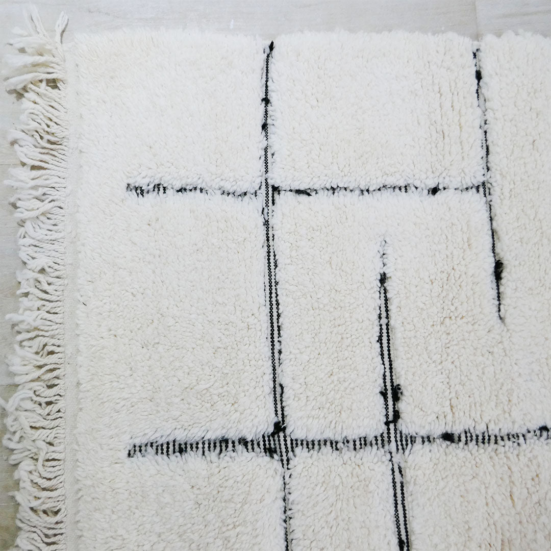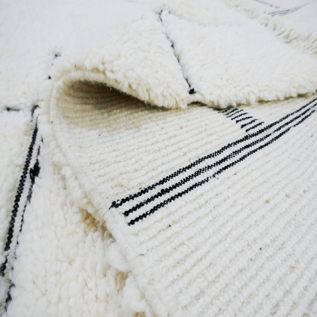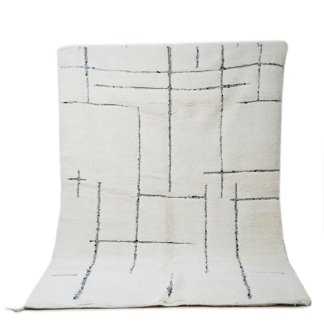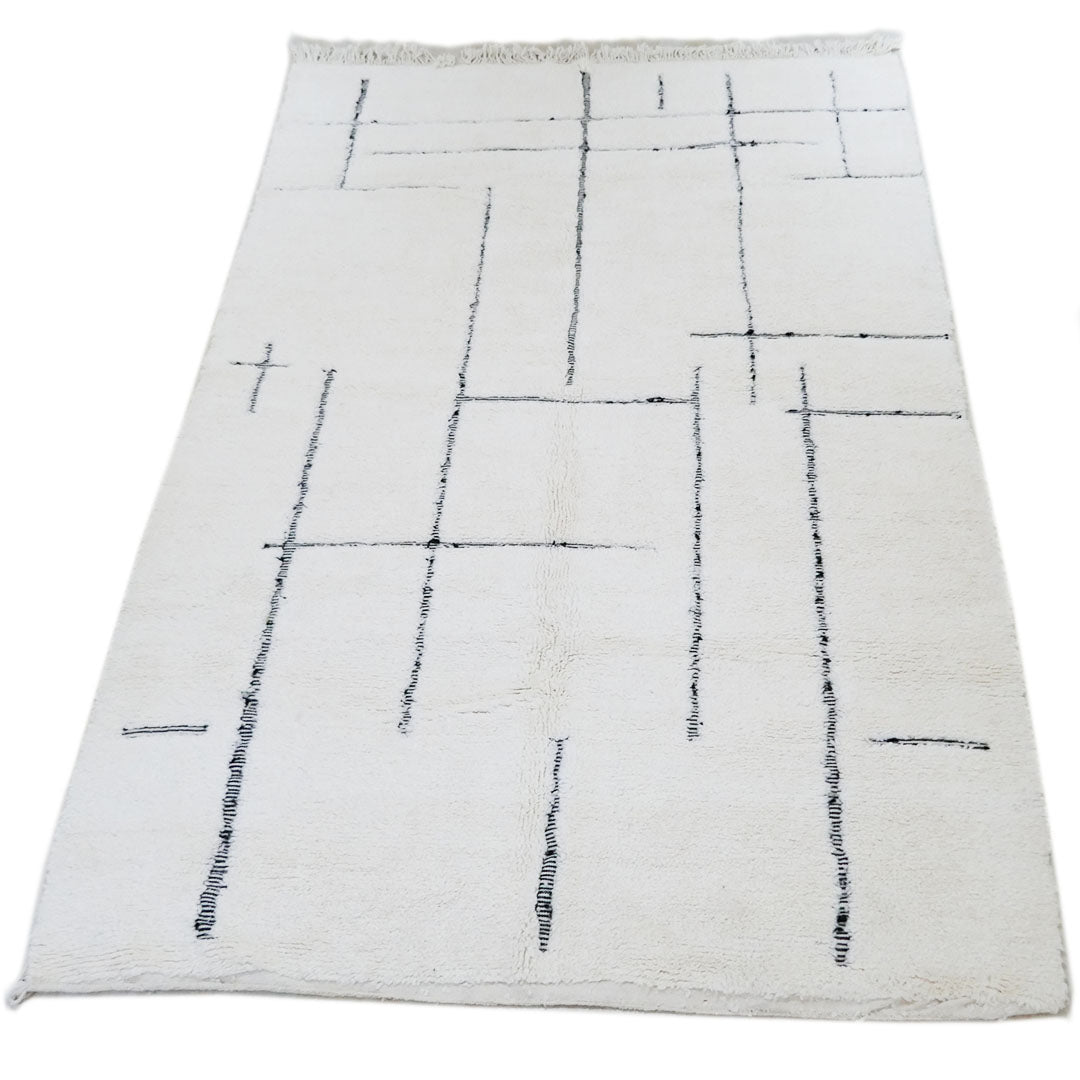 genuine beni ouarain handmade abstract wool moroccan rug berber neutral minimalist modern cream black carpet