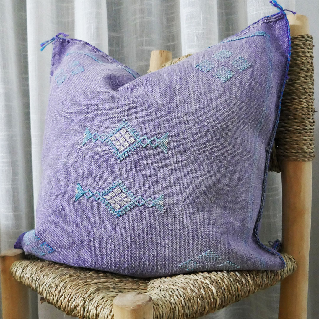 Add a modern bohemian luxe twist to your interior with our - one of a kind - cactus silk cushion covers, perfectly hand-loomed by Moroccan craftsmen. The cactus silk is entirely tinted with natural plant pigments, then bleached in the sun to create this beautiful stonewashed colors for an authentic vintage look.