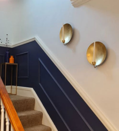 Lighten up those gloomy winter nights with these gorgeous Brass Round Gold Leaves Candlestick Holders Wall Sconces. Whether you are a history lover or simply just love the luxury of gold leaf, this wall sconce is sure to add a wonderful charm to your home. With a diameter of 20cm / 7.8",this gold leaf beauty is sure to make a statement on your walls.